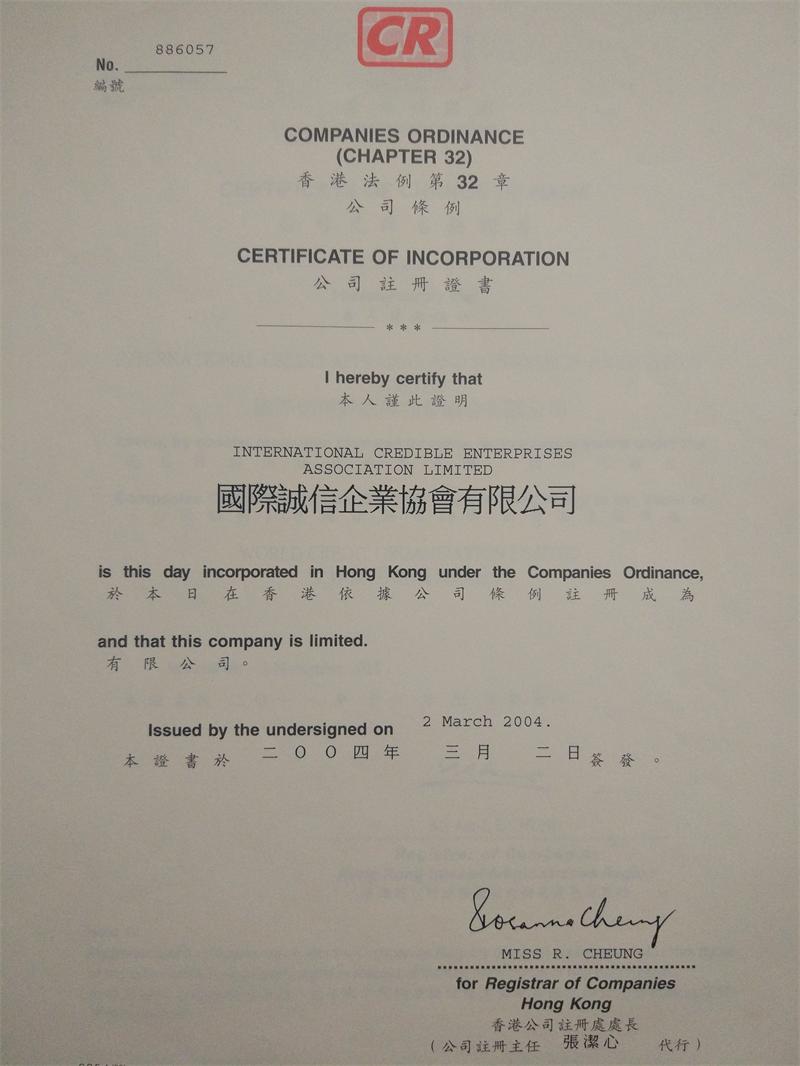(Note: Our Hong Kong company has stopped all activities, and the registration certificate only proves our establishment history)